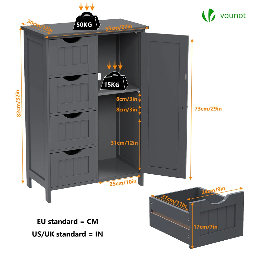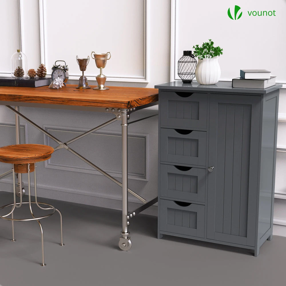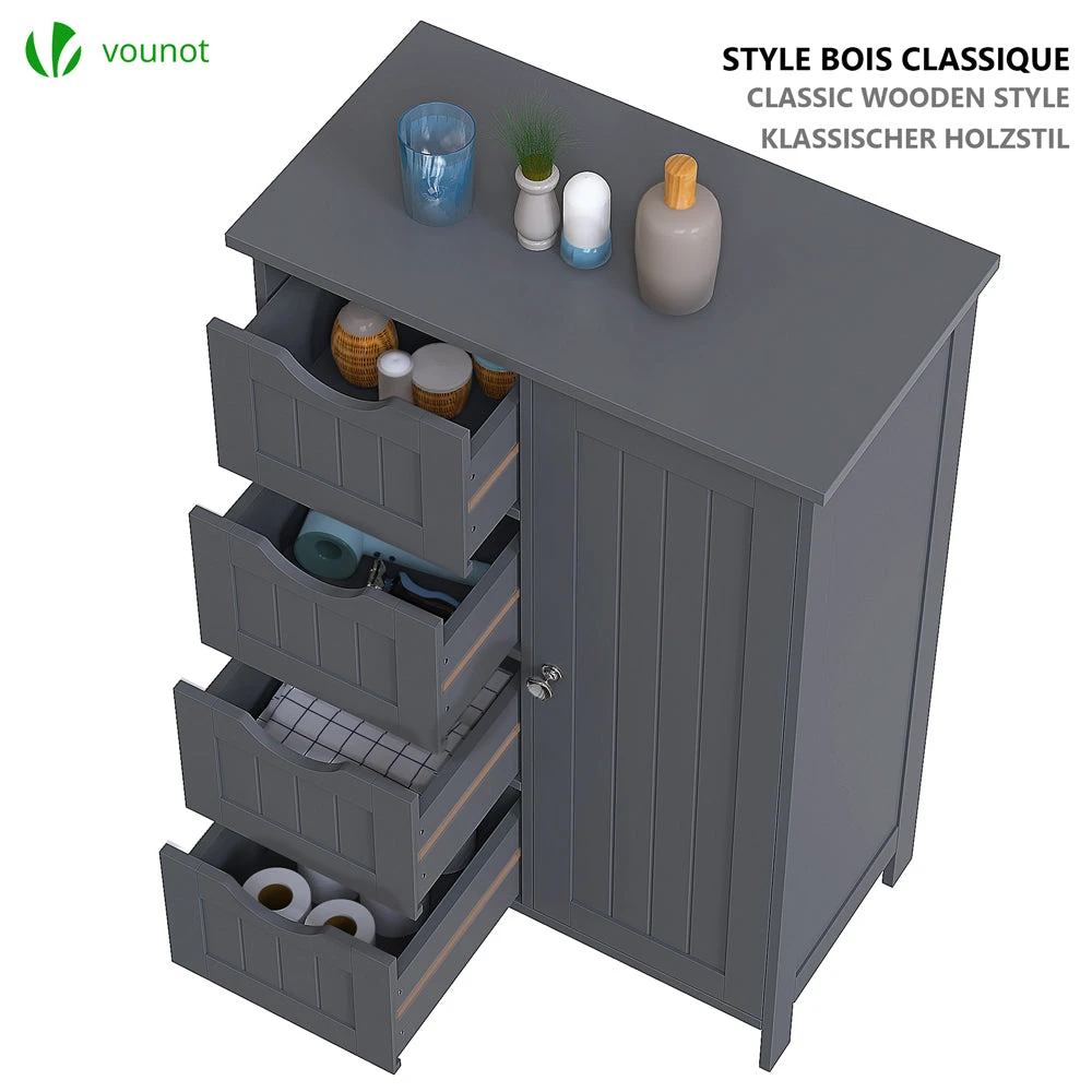 Meuble De Salle De Bain Rangement 4 Tiroirs 1 Porte 82x55x30cm Gris(Meuble De Salle De Bain Rangement 4 Tiroirs 1 Porte 82x55x30cm Gris)