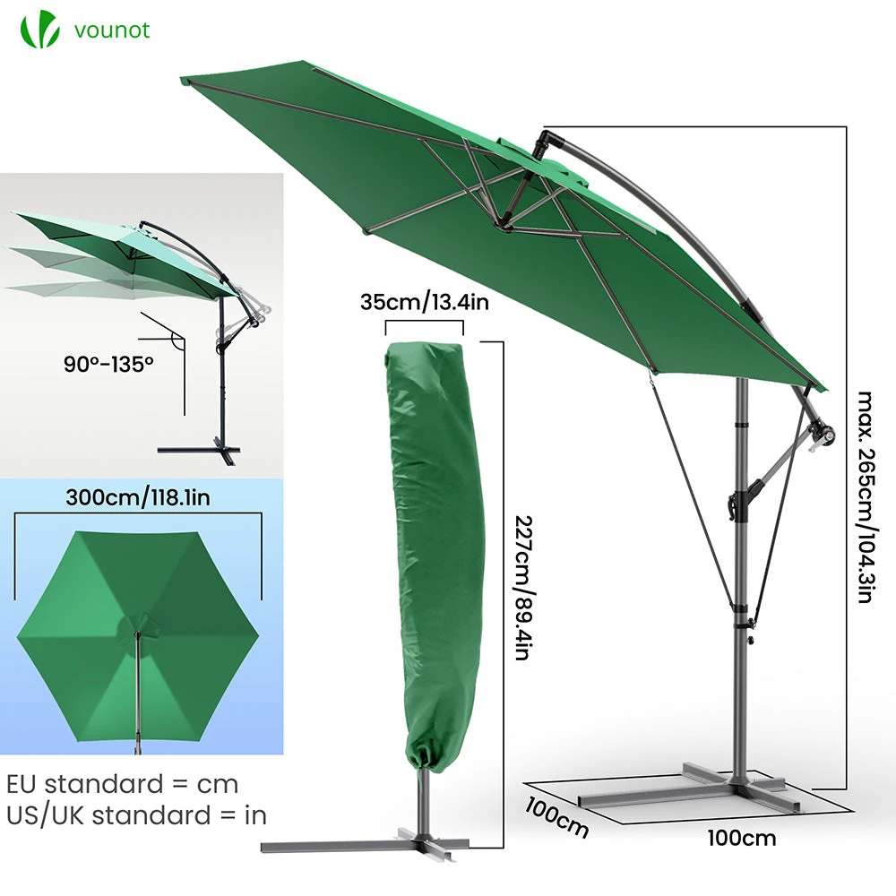 Parasol Deporte 3M Avec Housse De Protection Et Sangle De Fixation Vert(Parasol Deporte 3m Avec Housse De Protection Et Sangle De Fixation Vert)