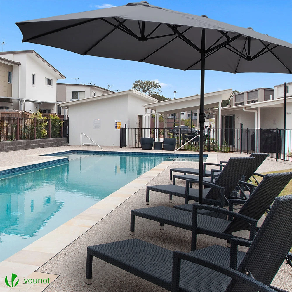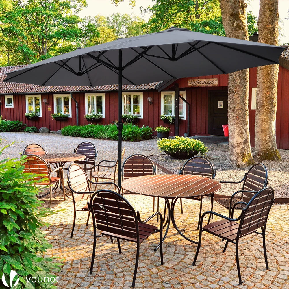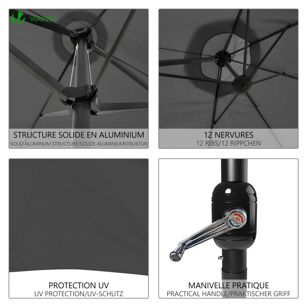 ATTENTION : Veuillez noter qu’il faut un support/dalle (non fournis) pour une meilleure stabilité. Les aventages de notre parasol double