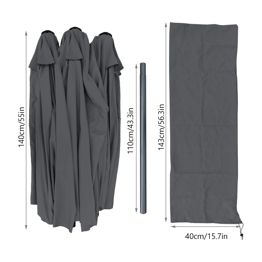 Parasol Jardin Double Aluminium 150×300 cm Couleur : Beige, Gris Matière : aluminium, polyester Dimensions de la Toile : 150x300cm Hauteur : 2.26m |