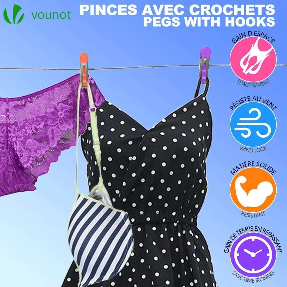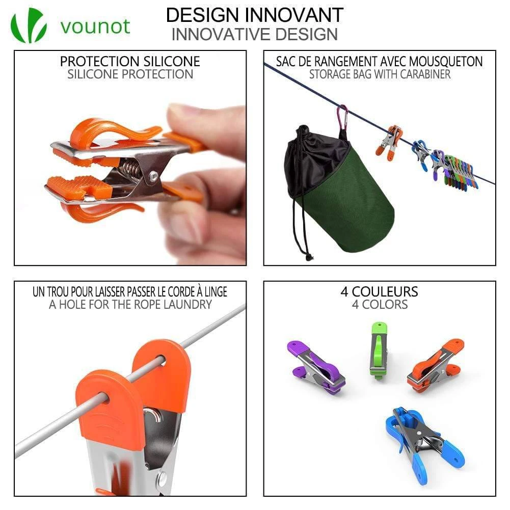 Sac de Rangement avec Mousqueton Fourni Sac fabriqué avec des tissus de qualité supérieure et des matières résistant à la corrosion et aux intempéries. Ce sac pour pinces à linge dispose d’un système de fermeture facile à utiliser grâce à un cordon de serrage pratique. Vous pouvez serrer le cordon et fermer le sac lorsque vous n’utilisez pas les pinces à linge. 2 crochets sont attachés au sac pour facilement le suspendre. Il peut également s’utiliser pour ranger des épingles, du linge et bien plus encore. Résistant au vent