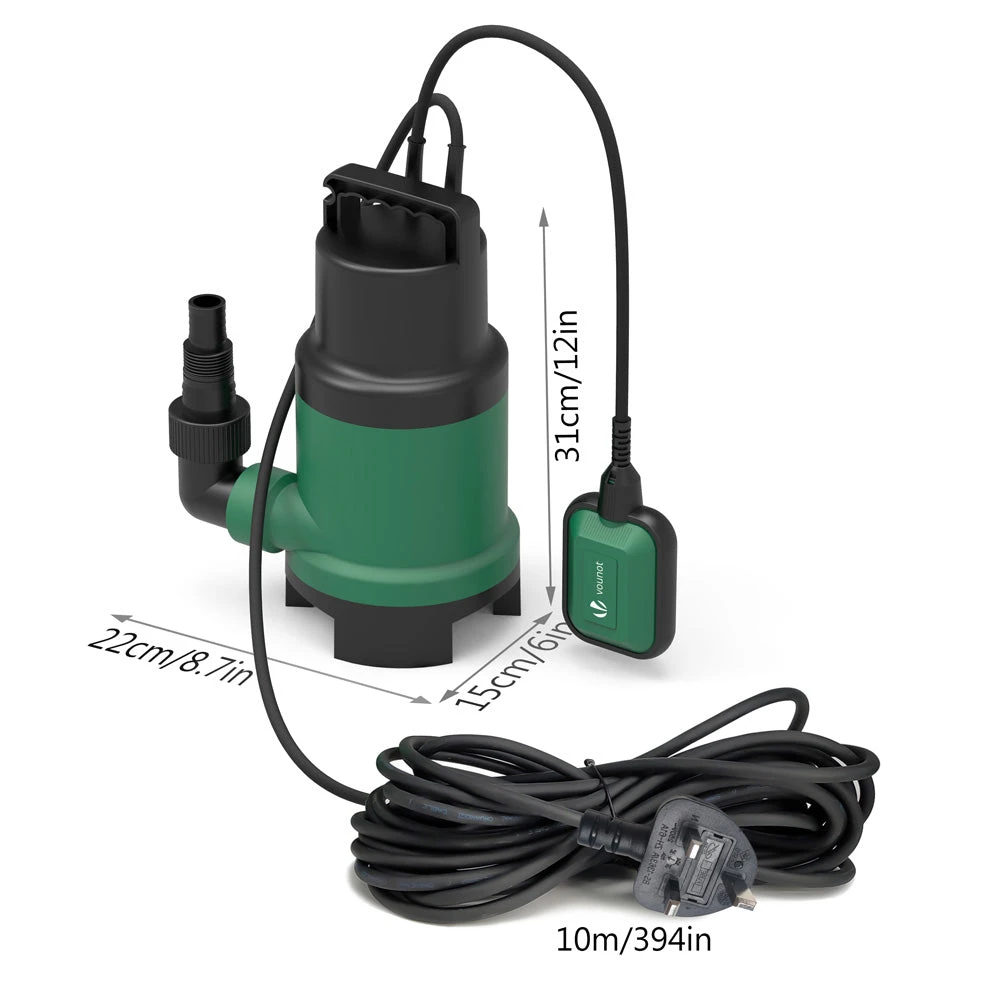 Raccord Universel et Câble Longue Notre pompe submersible est équipée d’un raccord universel qui permet de raccorder des tuyaux de différentes tailles. Le raccord fourni correspond aux tuyaux de 13/15/19/25/32mm. De plus, nous offrons un câble d‘alimentation de 10m, ce qui vous permet d’utiliser cette pompe librement dans tous les espaces. IMPORTANT : Les livraisons se font en France métropolitaine à l’exception des îles qui ne sont pas reliées au continent par un pont (Corse, Ile d’Yeux etc.) et des DOM-TOM.