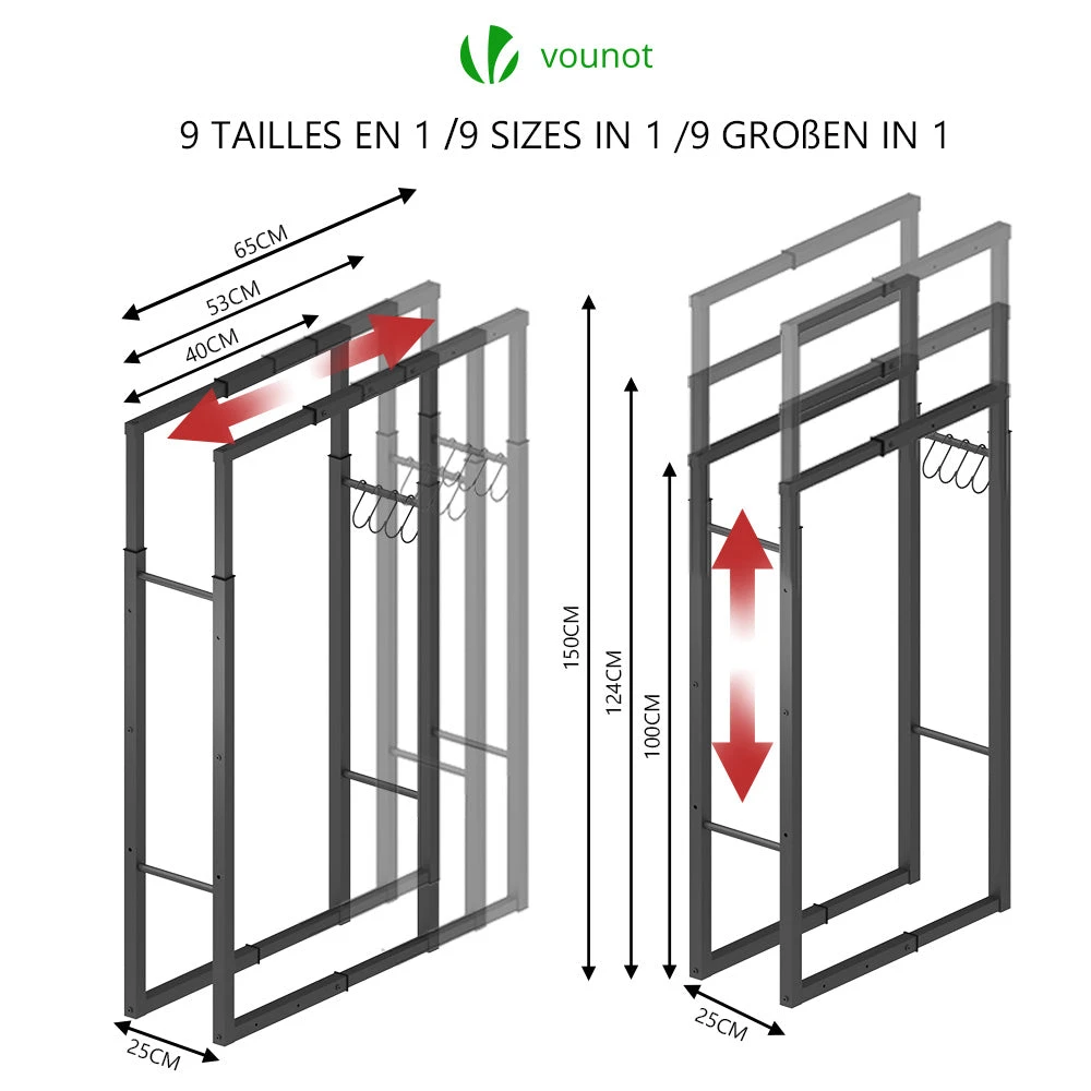 La largeur et la hauteur de notre range-bûche sont ajustables en 9 positions. Grâce à sa conception télescopique, il peut s’adapter au style environnant et est idéal pour une utilisation familiale dans votre salon, cabanon, garage ou jardin.