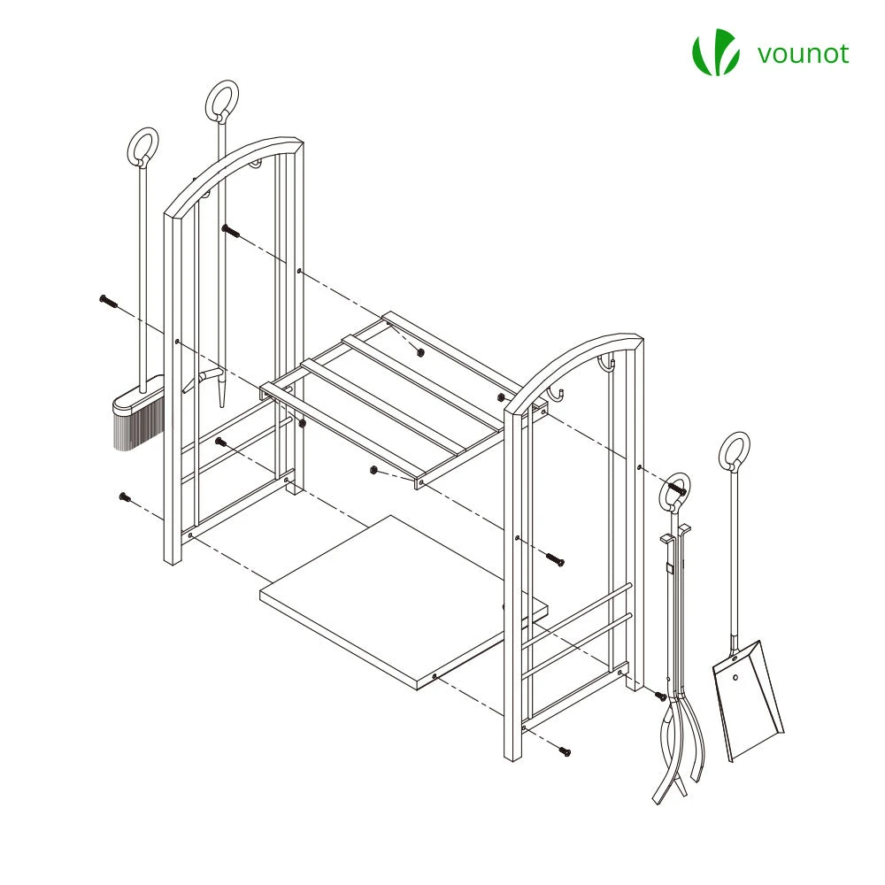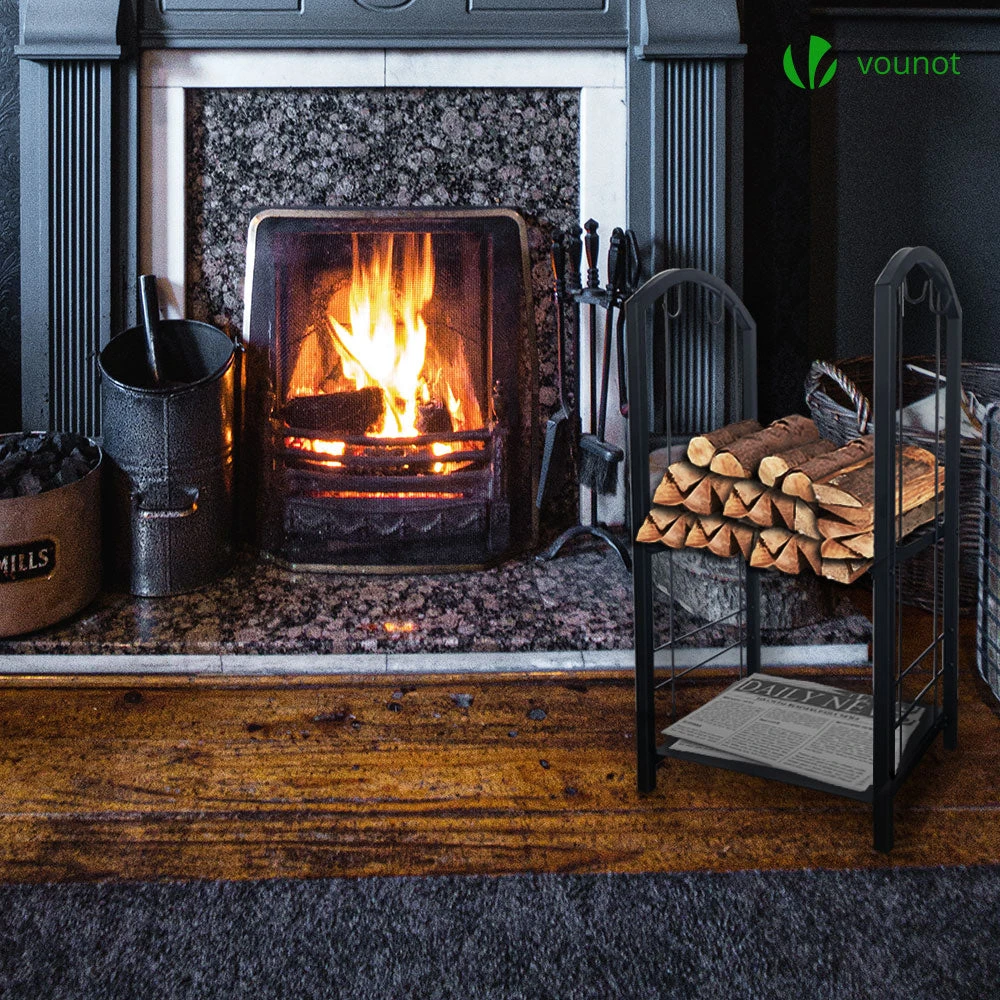 | Porte buches avec 4 outils en metal noir | Porte buche telescopique noir | Serre buche 2m avec housse de protection | Serre buche 3m avec housse de protection |