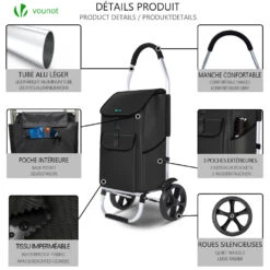 Chariot De Course Pliable Aluminium 2 Roues Noir(Chariot De Course Pliable Aluminium 2 Roues Noir)
