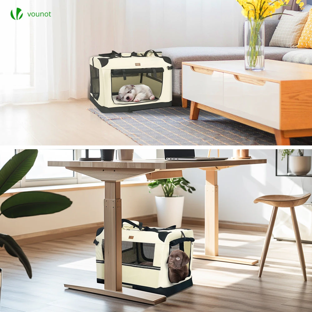 Sac Transport Pliable Chien Chat Caisse Cage Portable 60x44x44cm Beige(Sac Transport Pliable Chien Chat Caisse Cage Portable 60x44x44cm Beige)