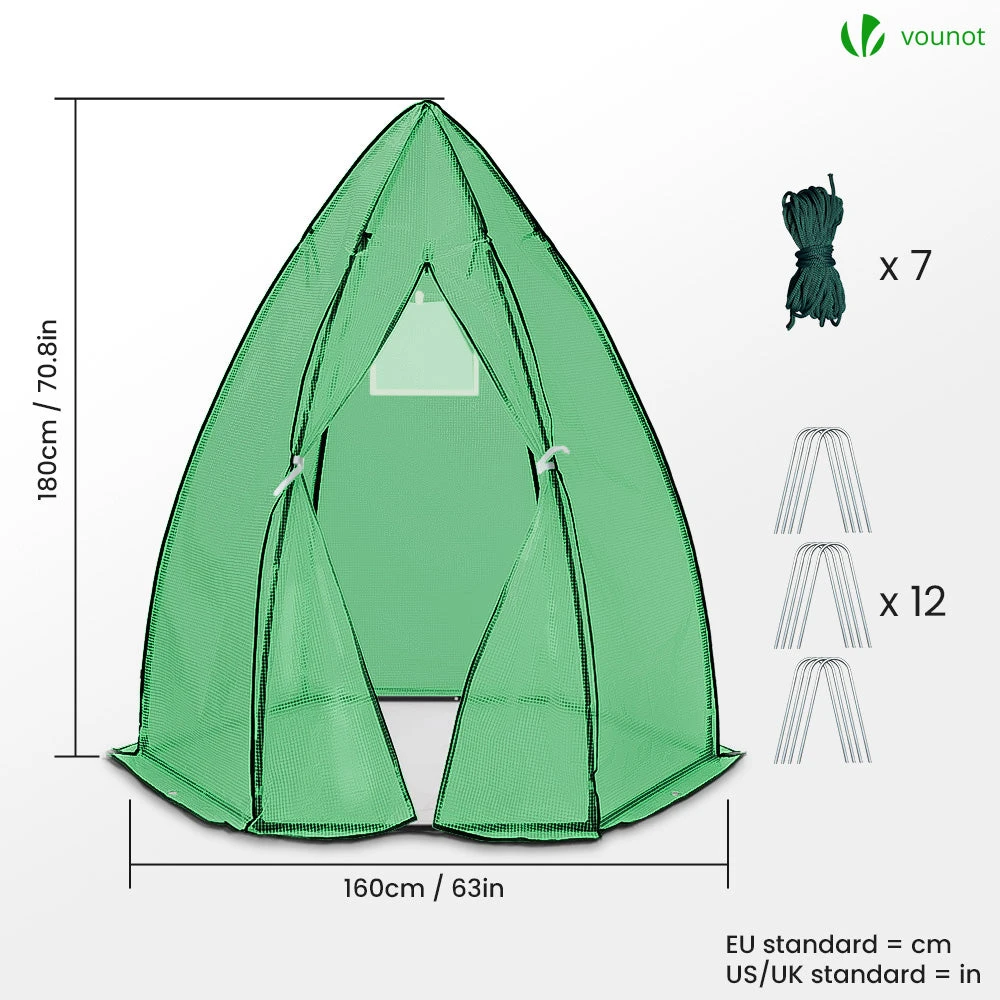 CARACTÉRISTIQUES • Taille de la serre : L.160 x l.160 x H.180 cm • Matériaux : polyéthylène haute densité de 135g/m2 ; Acier robuste ; Nylon • Couleur : Blanc • Contenu : 1*serre de jardin; 7*attaches nylon ; 12*piquets de fixation Serre de jardin hivernage dome