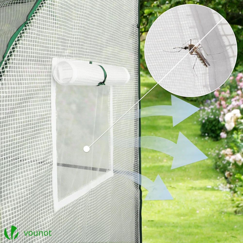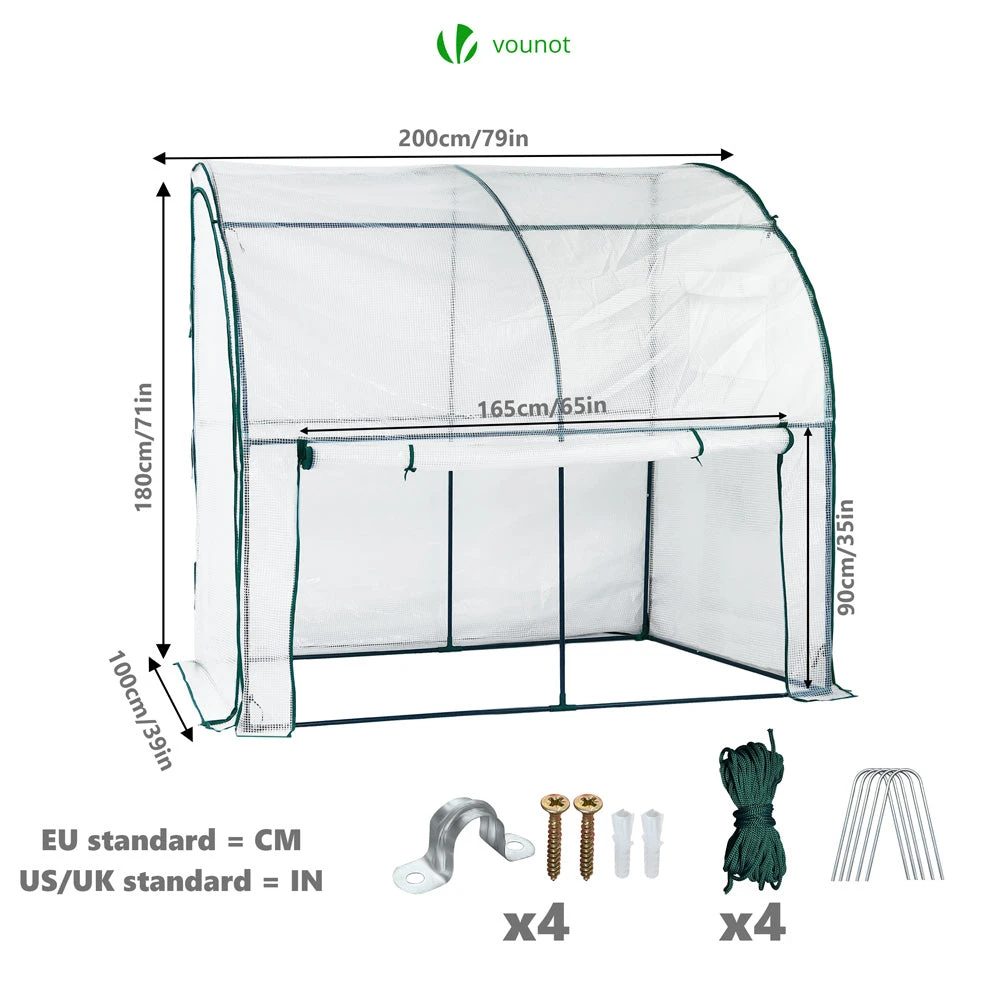 CARACTÉRISTIQUES • Taille de la serre : L.200 x l.100 x H.180 cm • Matériaux : polyéthylène haute densité de 135g/m2 ; Acier robuste ; Nylon • Couleur : Blanc • Contenu : 1*serre de jardin; 4*attaches nylon ; 4*piquets de fixation Serre de Jardin Murale Adossée