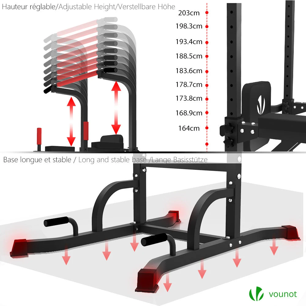 Multifonction – Idéal pour entraîner tout le corps Notre station de musculation est idéale pour entraîner toutes les parties de votre corps, tel que les abdominaux, le dos, les bras et les épaules. Avec un seul et même appareil, vous pouvez faire des tractions, pompes, dips et levées de jambes.