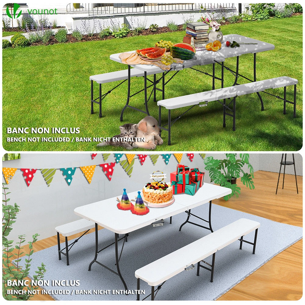 | Table de camping pliable blanc | Table de camping pliable noir | Table et bancs pliables blanc | Table et bancs pliables noir |
