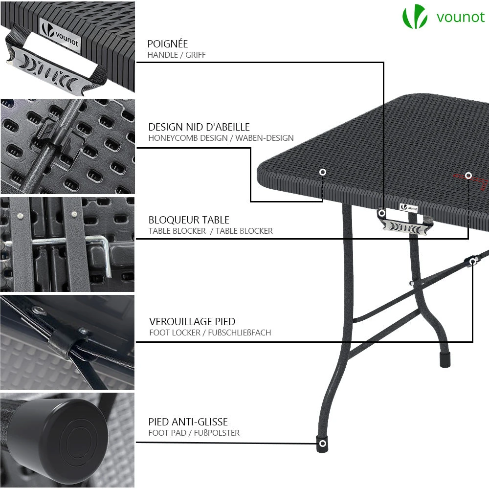 | Table de camping pliable blanc | Table de camping pliable noir | Table et bancs pliables blanc | Table et bancs pliables noir |