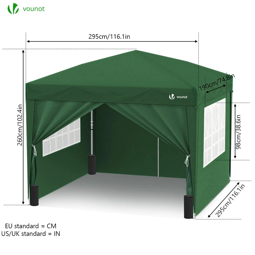 Tonnelle De Jardin 3x3m Pliable Avec Portes Et Fenêtres Vert(Tonnelle De Jardin 3x3m Pliable Avec Portes Et Fenetres Vert)