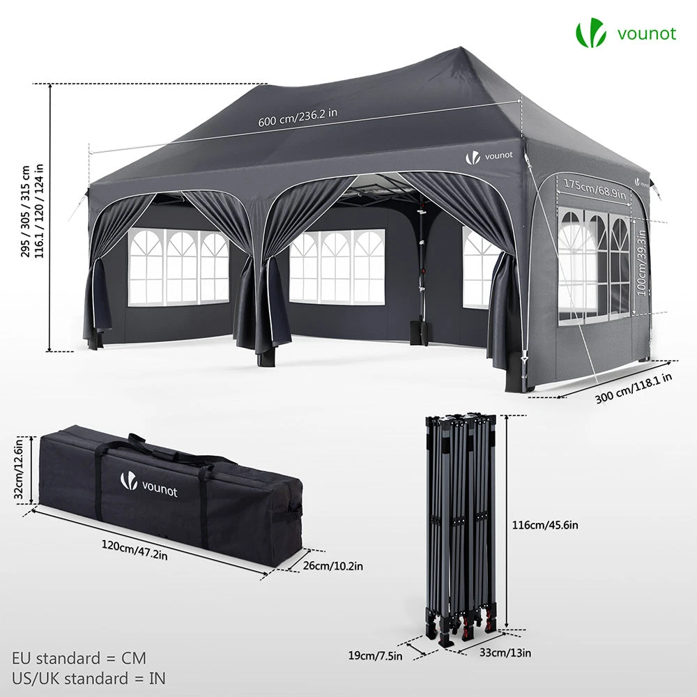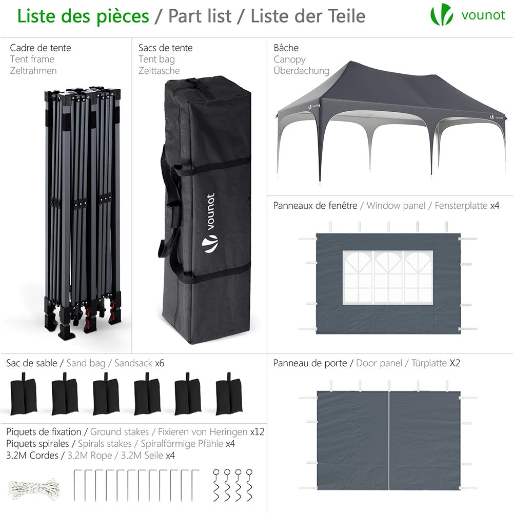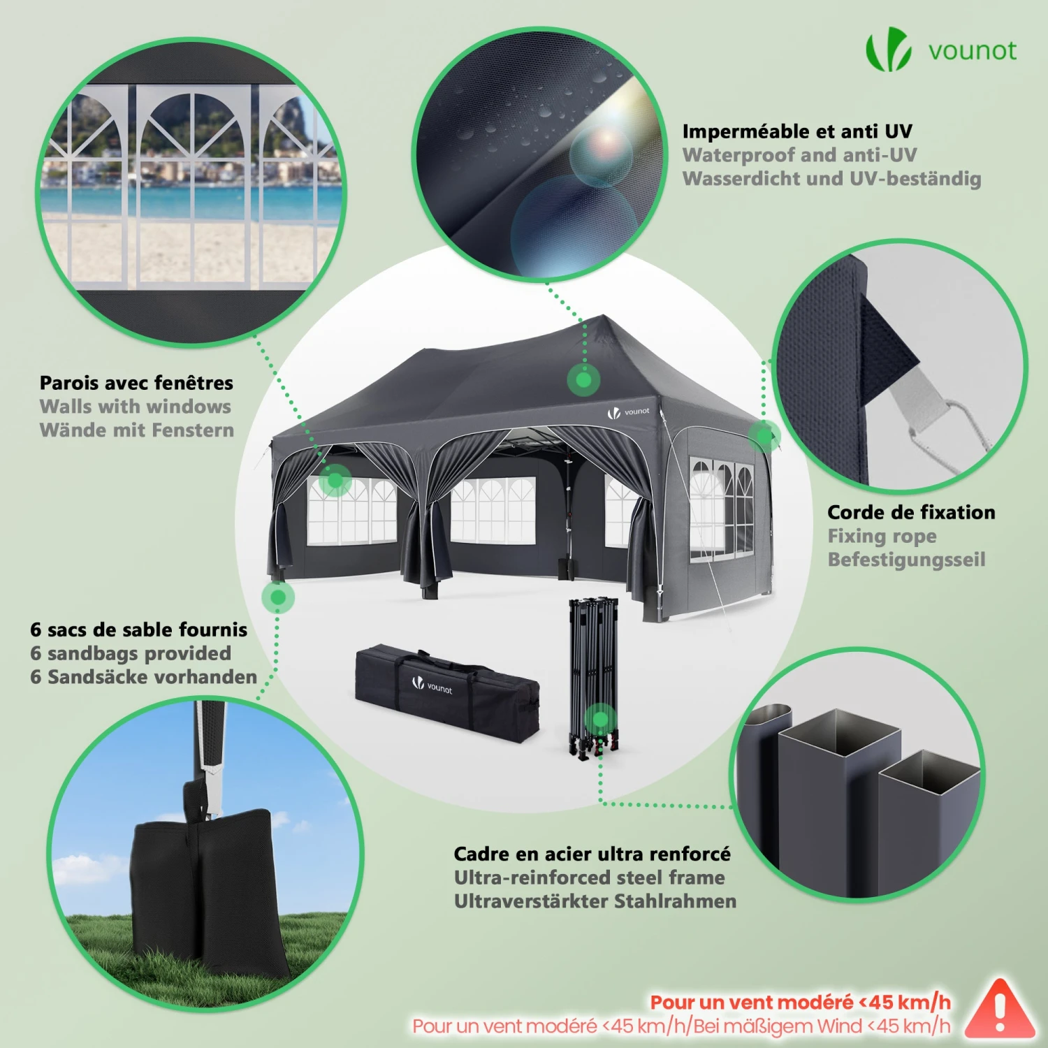 Tonnelle De Jardin 3x6m Pliable Barnum Avec 6 Parois Amovibles Gris(Tonnelle De Jardin 3x6m Pliable Barnum Avec 6 Parois Amovibles Gris)
