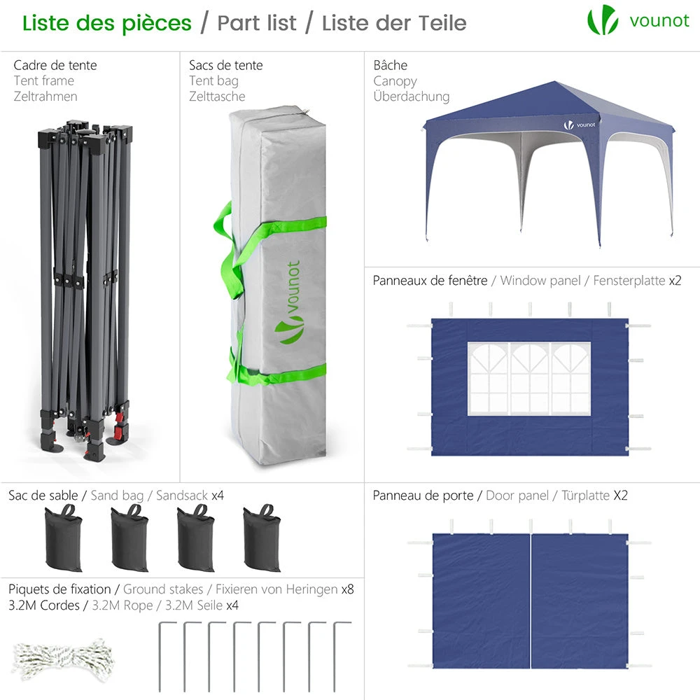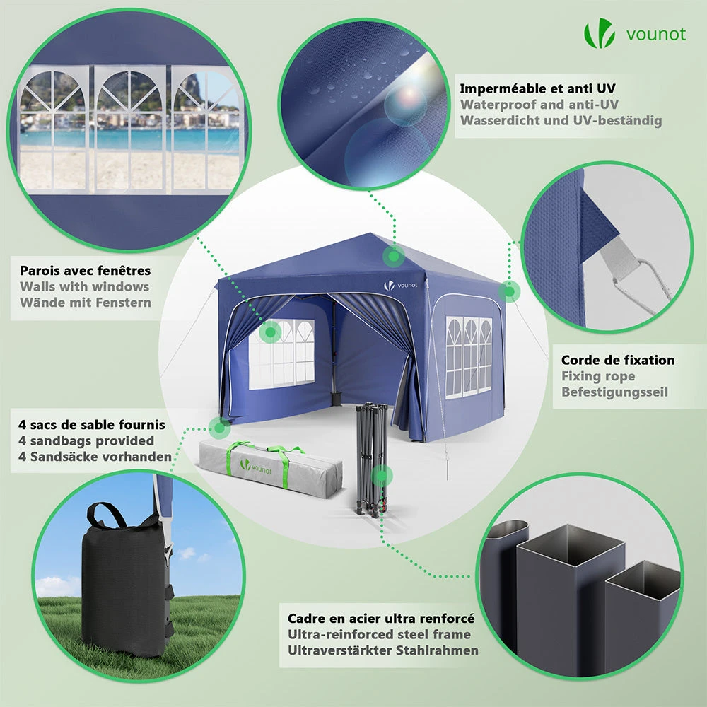 Tonnelle De Jardin Arquee 3x3m Pliable Avec Porte Et Fenetre Amovible Bleu(Tonnelle De Jardin Arquee 3x3m Pliable Avec Porte Et Fenetre Amovible Bleu)
