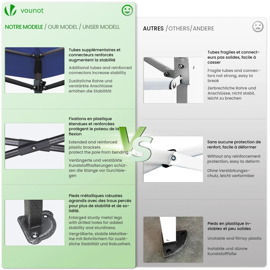 Tonnelle de jardin renforcée 3x3m pliable avec parois Couleur : Gris, Blanc, Vert, Bleu Matière : Acier inox, Polyester, PVC Poids : 23kg |
