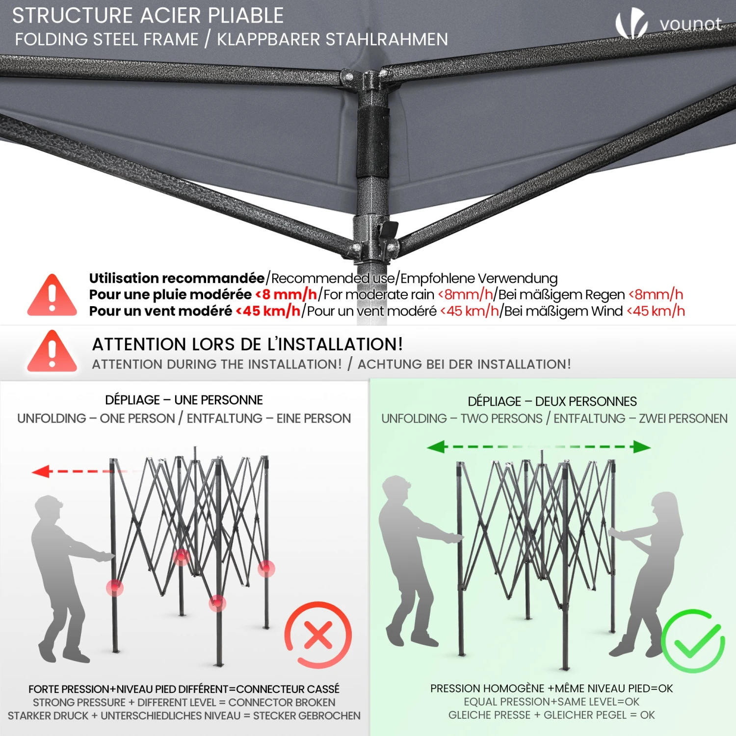 Tonnelle de jardin 3x6m pliable avec parois Couleur : Blanc, Gris, Noir Matière : Acier, Polyester Poids : 28.6kg |