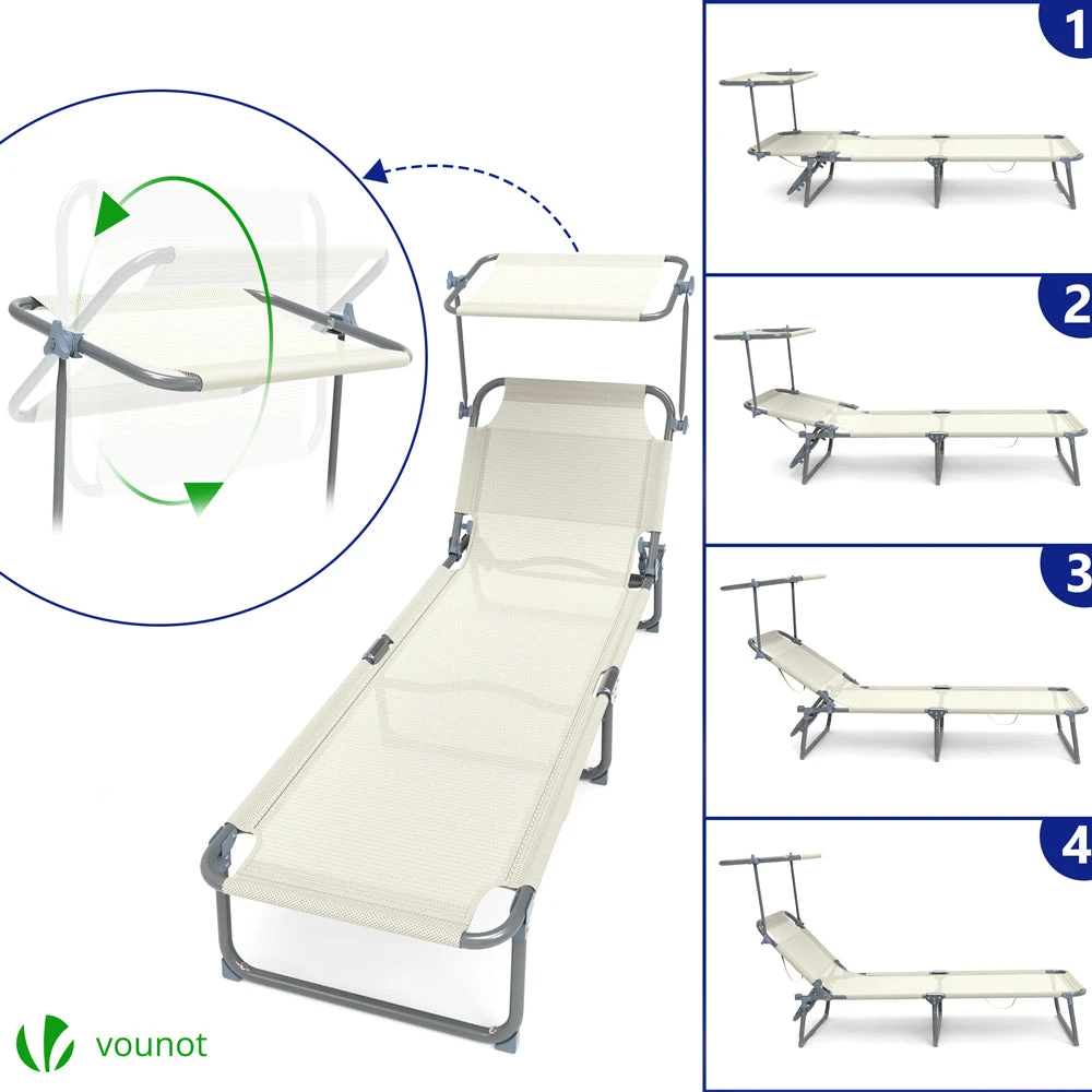 Transat Pare Soleil Textilene Et Range Magazine Lot De 2 Pcs Beige(Transat Pare Soleil Textilene Et Range Magazine Lot De 2 Pcs Beige)
