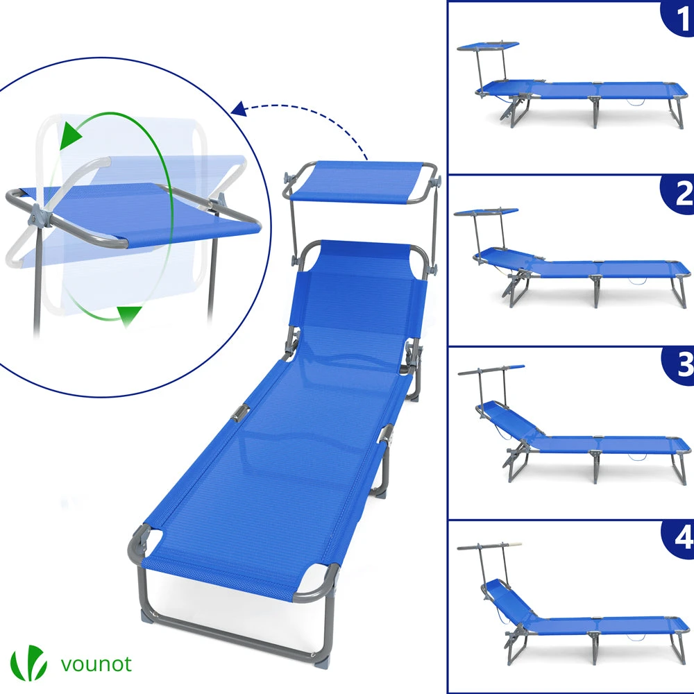 Transat Pare Soleil Textilene Et Range Magazine Lot De 2 Pcs Bleu(Transat Pare Soleil Textilene Et Range Magazine Lot De 2 Pcs Bleu)