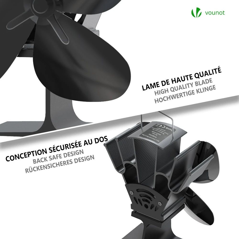 COMMENT CE VENTILATEUR CHEMINÉE FONCTIONNE? Ce ventilateur de poêle alimenté par la chaleur ne nécessite ni piles ni électricité et est conçu pour faire circuler l’air chaud produit par le bois/charbon ou les granulés.