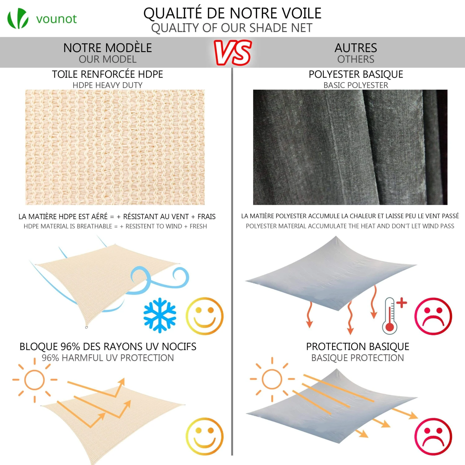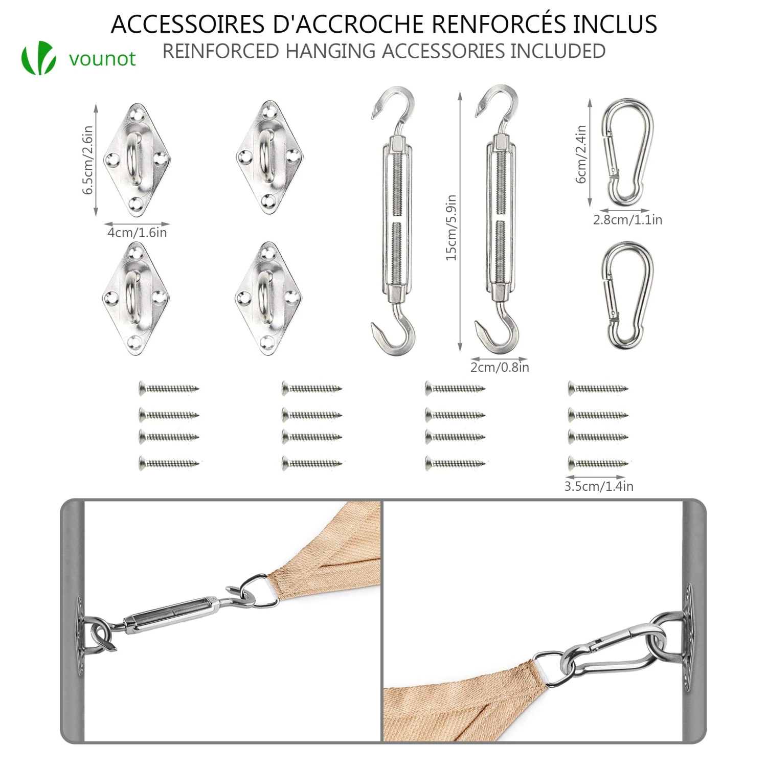 KIT DE FIXATION INCLUS GRATUITEMENT Notre lot inclus des accessoires de fixation au mur pour renforcer la stabilité de votre voile lors de conditions météorologiques difficile. Vous n’avez pas besoin de payer en plus pour d’obtenir une valeur ajoutée.